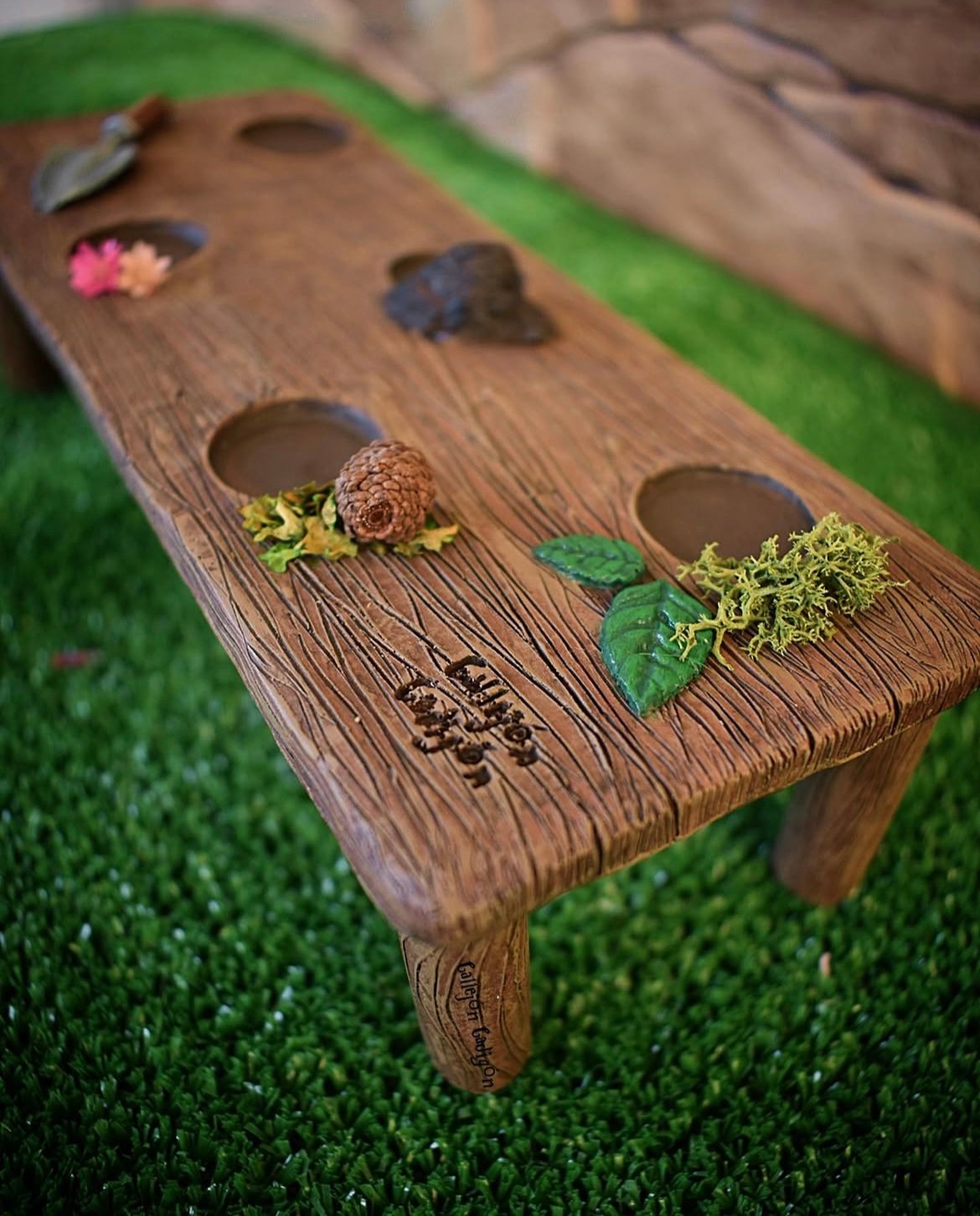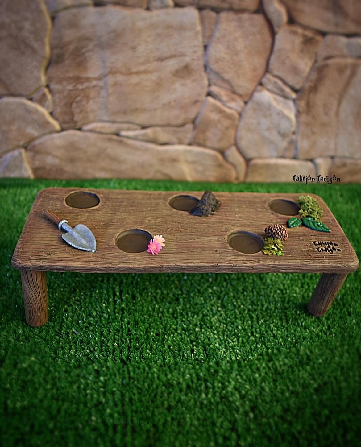 Dicen que las mandrágoras necesitan un entorno tranquilo, donde puedan enraizar su magia sin sobresaltos. Esta mesa expositora está diseñada especialmente para ellas: un pequeño altar de madera que parece sacado del invernadero de una bruja botánica.