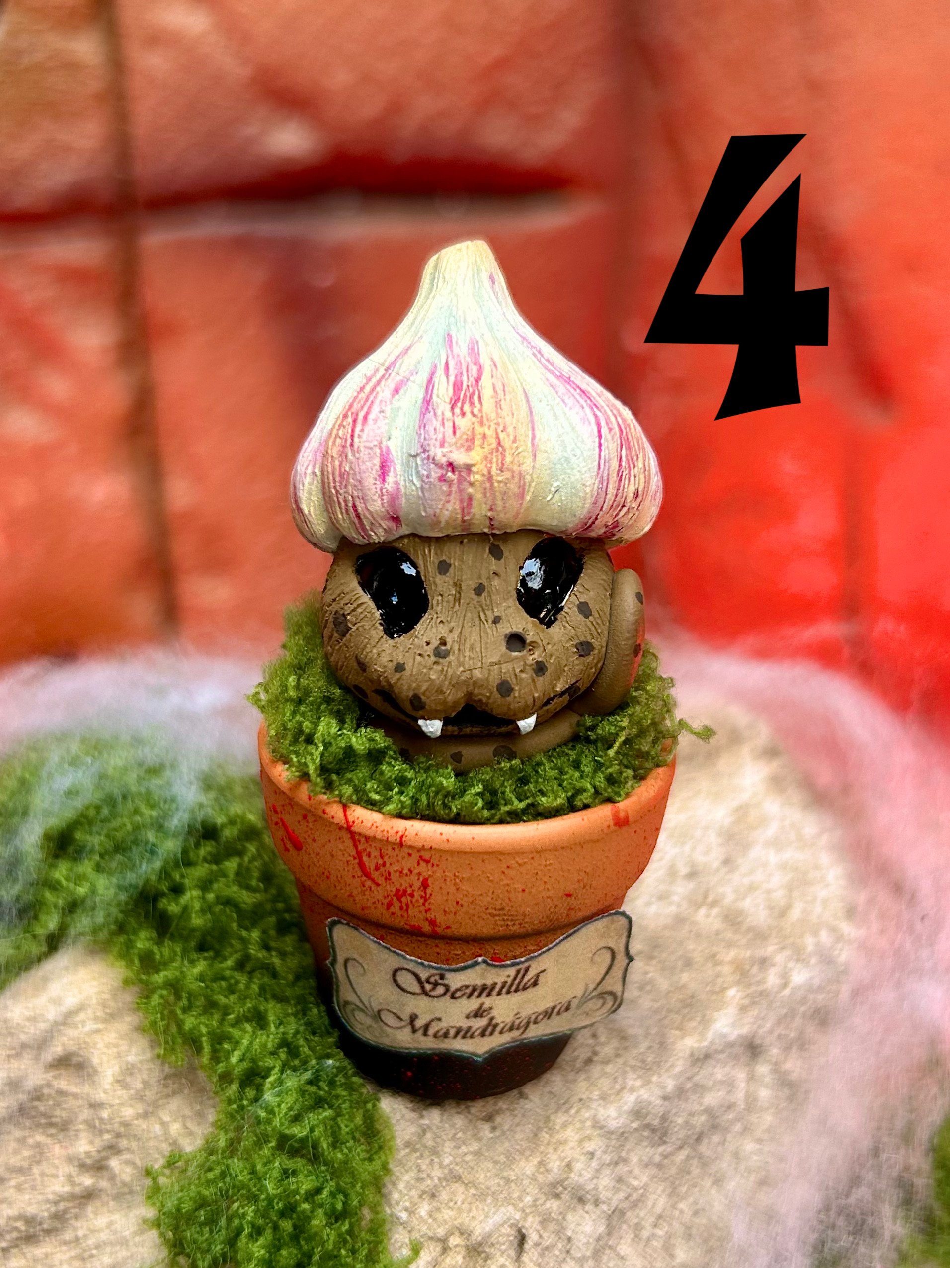 Dicen que en las noches de luna llena, esta pequeña mandrágora emite un leve susurro… y que ningún vampiro se atreve a acercarse.